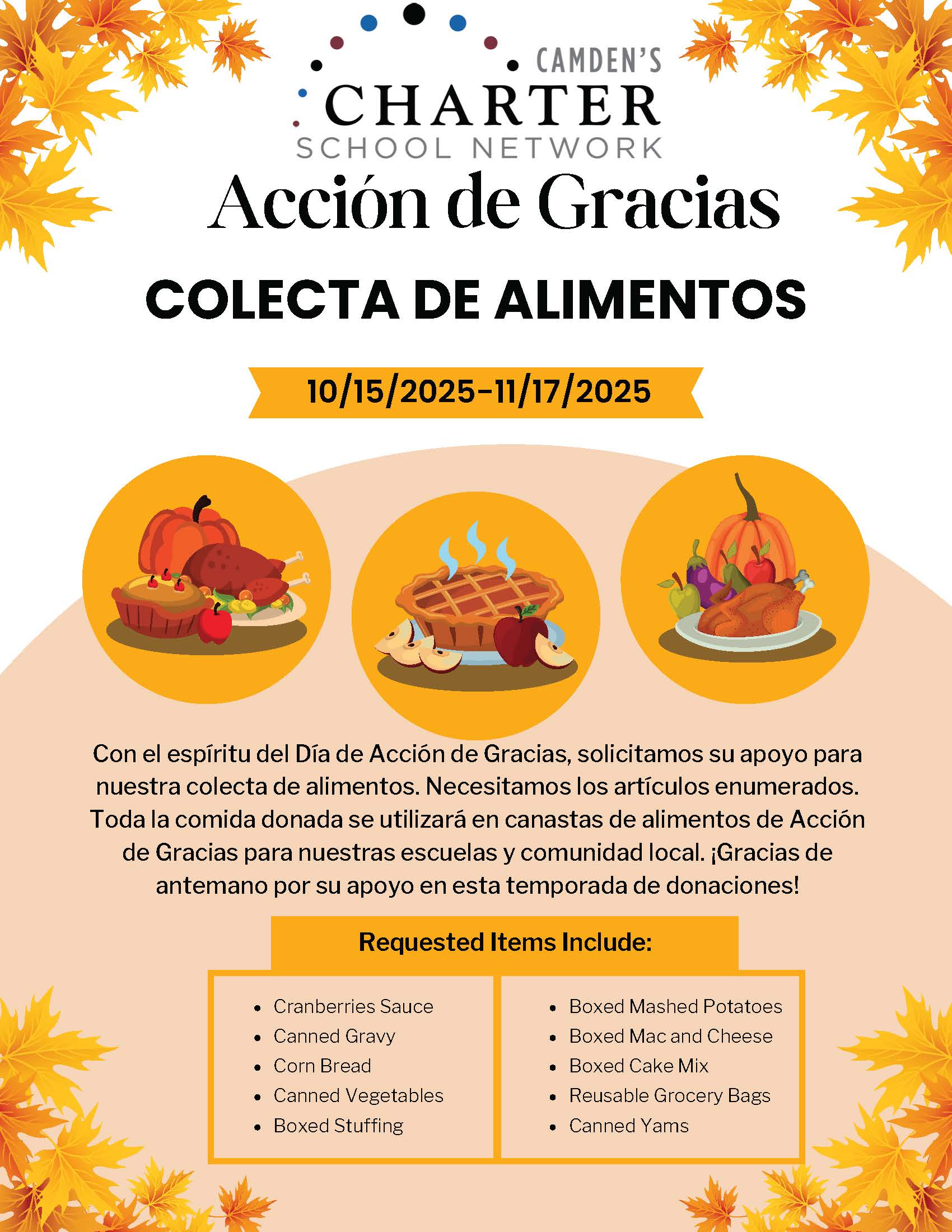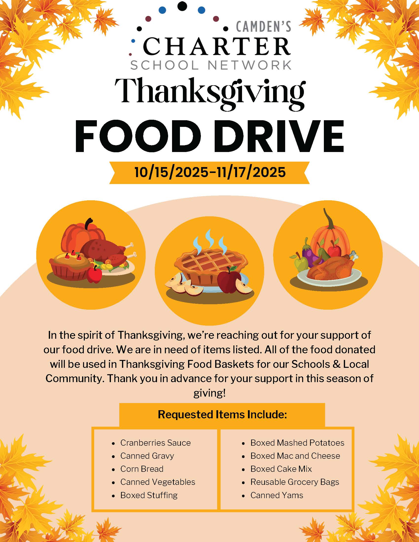 October 15th: Thanksgiving Food Drive Begins