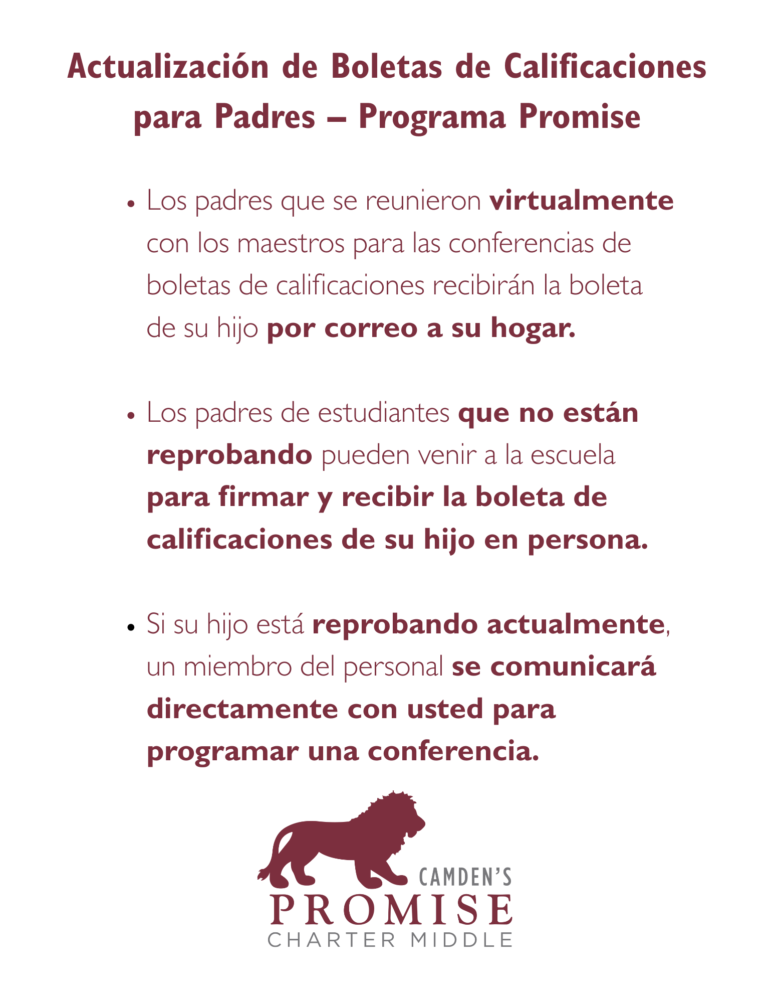 Estimadas familias de la Red de Escuelas Charter de Camden,