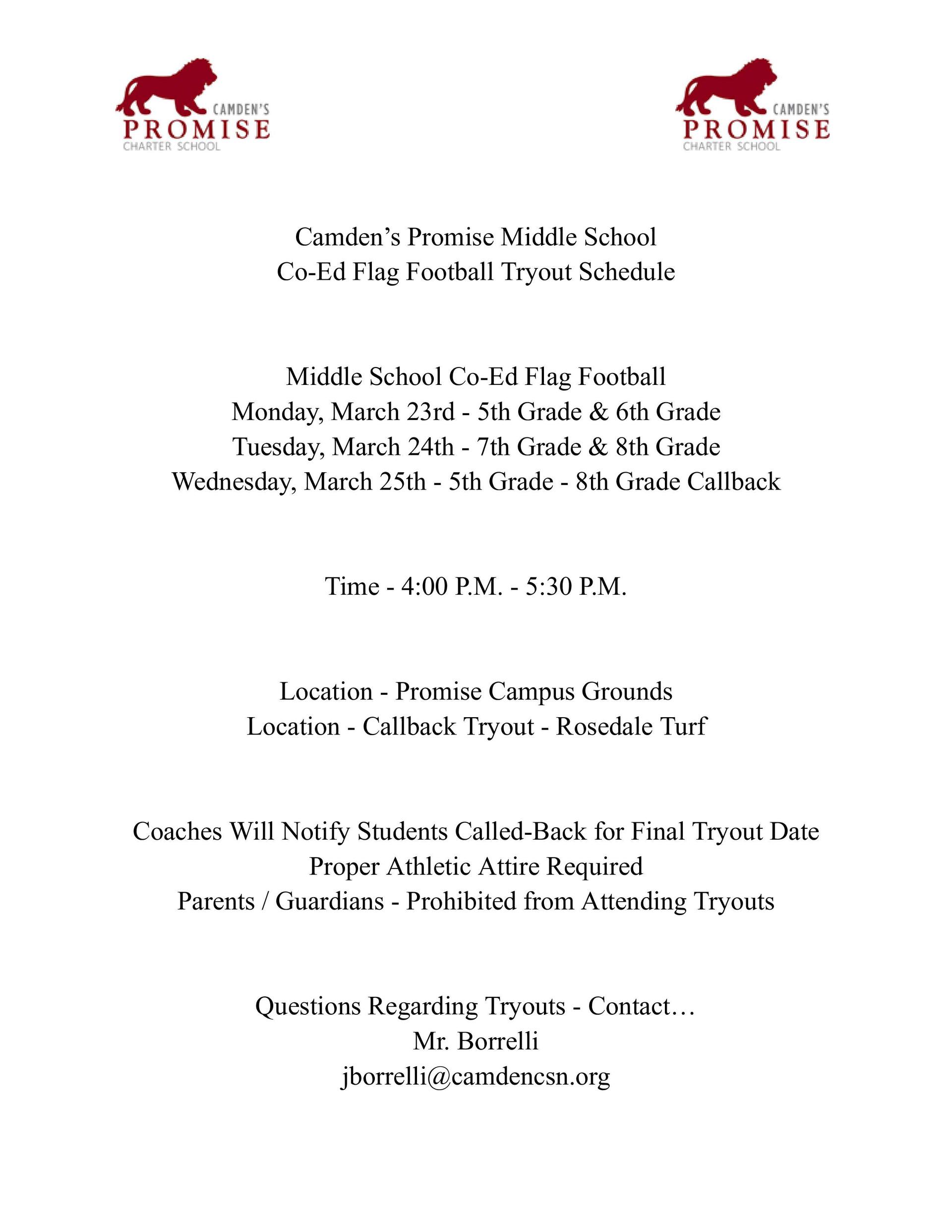 Promise: Co-Ed Flag Football Tryouts 5th & 6th Grade
